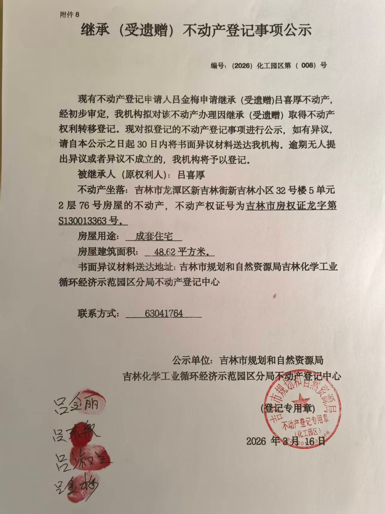 继承(受遗赠)不动产登记事项公示(吕喜厚)