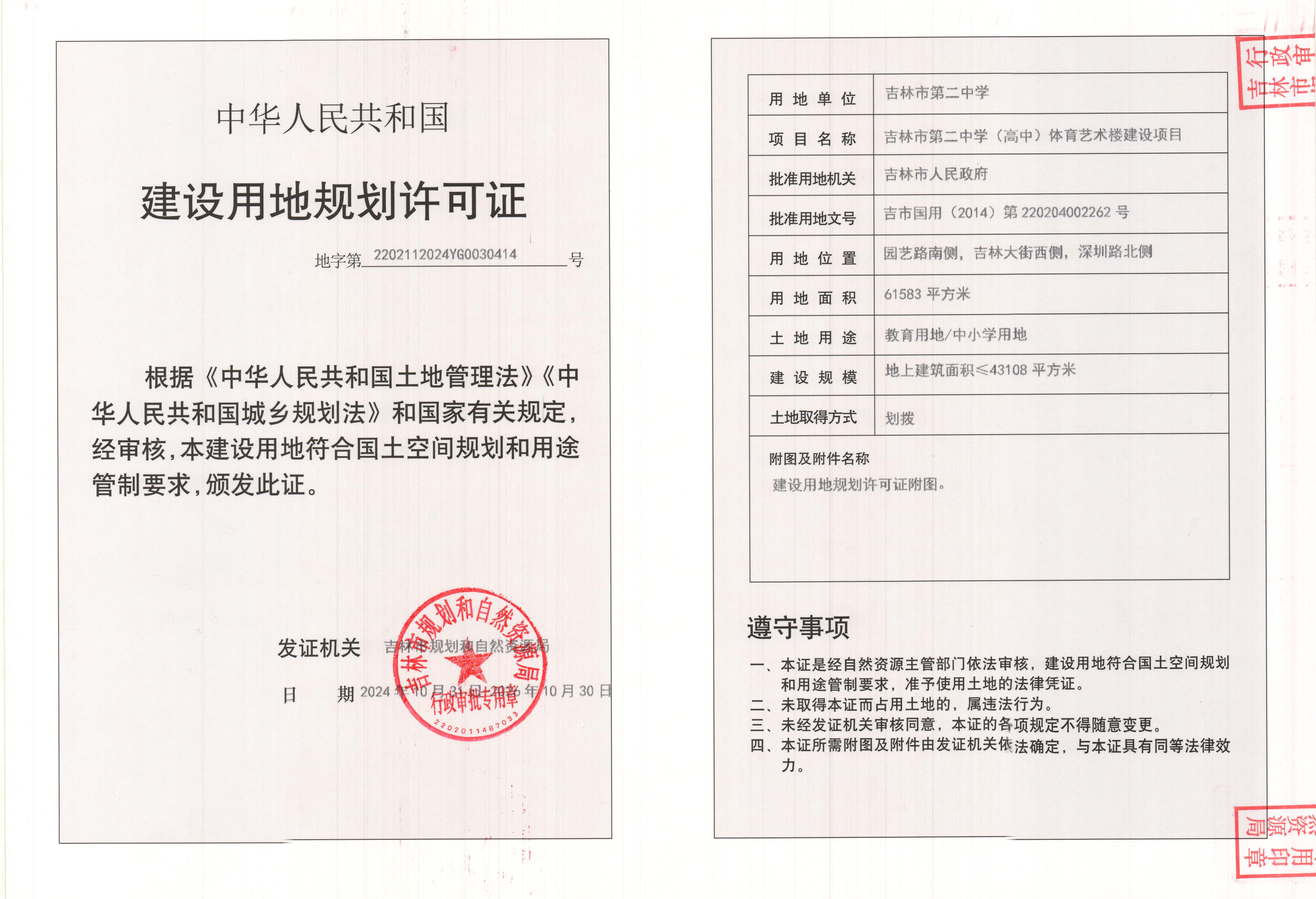 吉林市第二中学(高中)体育艺术楼建设项目